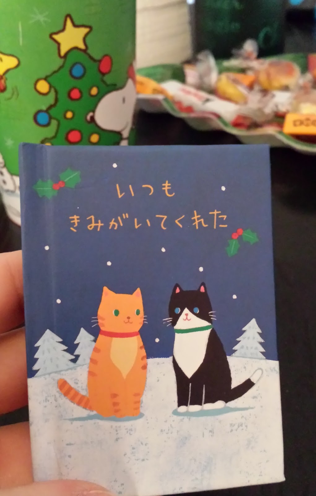 Here's the Christmas package - I included a delicious red bean paste and walnut manju cookie thingy and got rid of a couple of smushed chocolates.